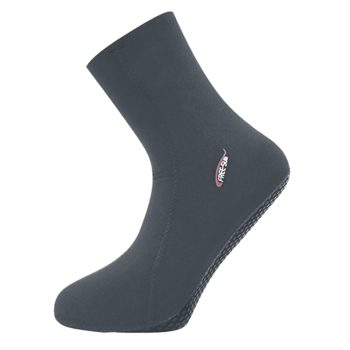 جوراب پارچه ای مشکی فری ساب | سطح داخلی و خارجی از ژرسه (پارچه) | 3 میلی متر | ساخته شده از نئوپرن صددرصد CR | در دو مدل دارای محافظ کف و بدون محافط کف