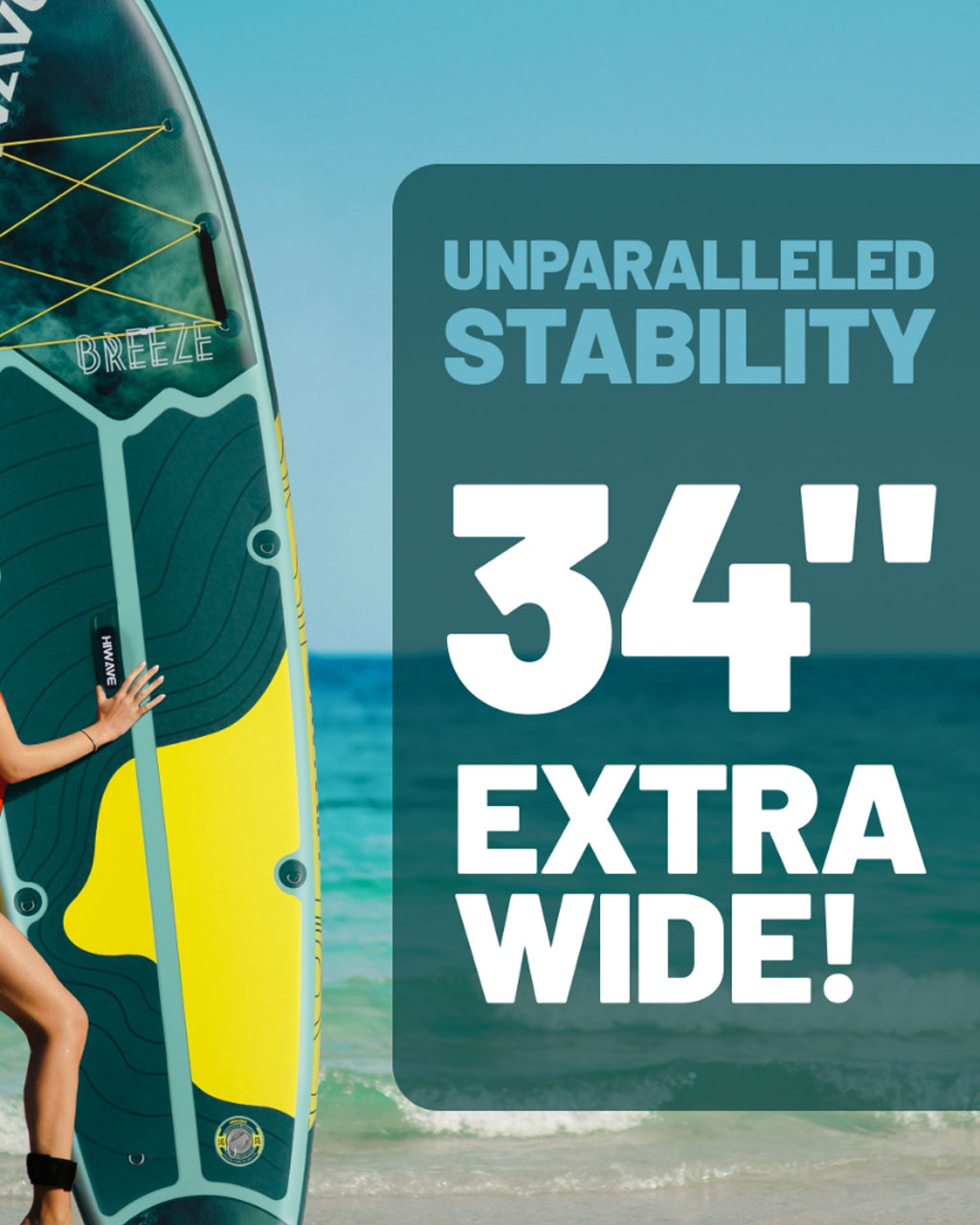 تخته پدل بورد بادی با پد عرشه EVA ضد لغزش و ساخته شده از مواد باکیفیت که قادر به تحمل فشار بالا است. عرض 34 اینچ ثبات بالایی را فراهم میکند.