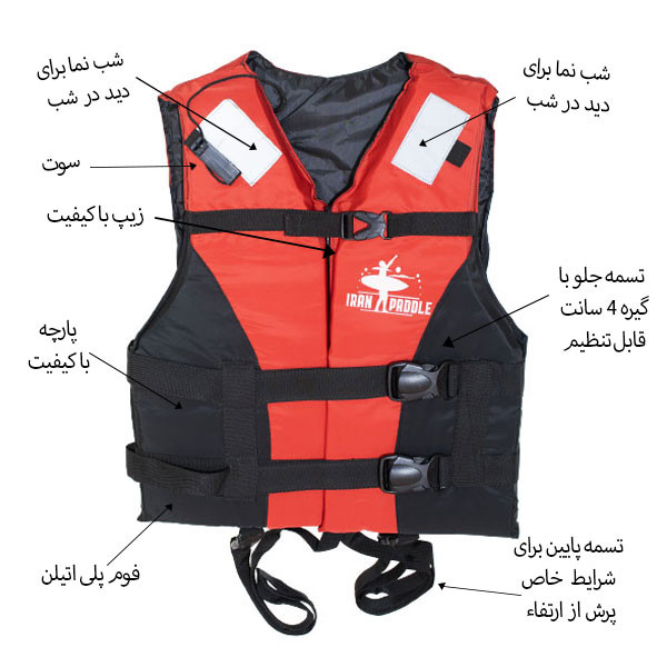 جلیقه نجات ایرانپدل، الهام گرفته از جلیقههای یاماها ژاپن، با رعایت تمام استانداردهای لازم برای ایمنی و راحتی طراحی و تولید شده است.
