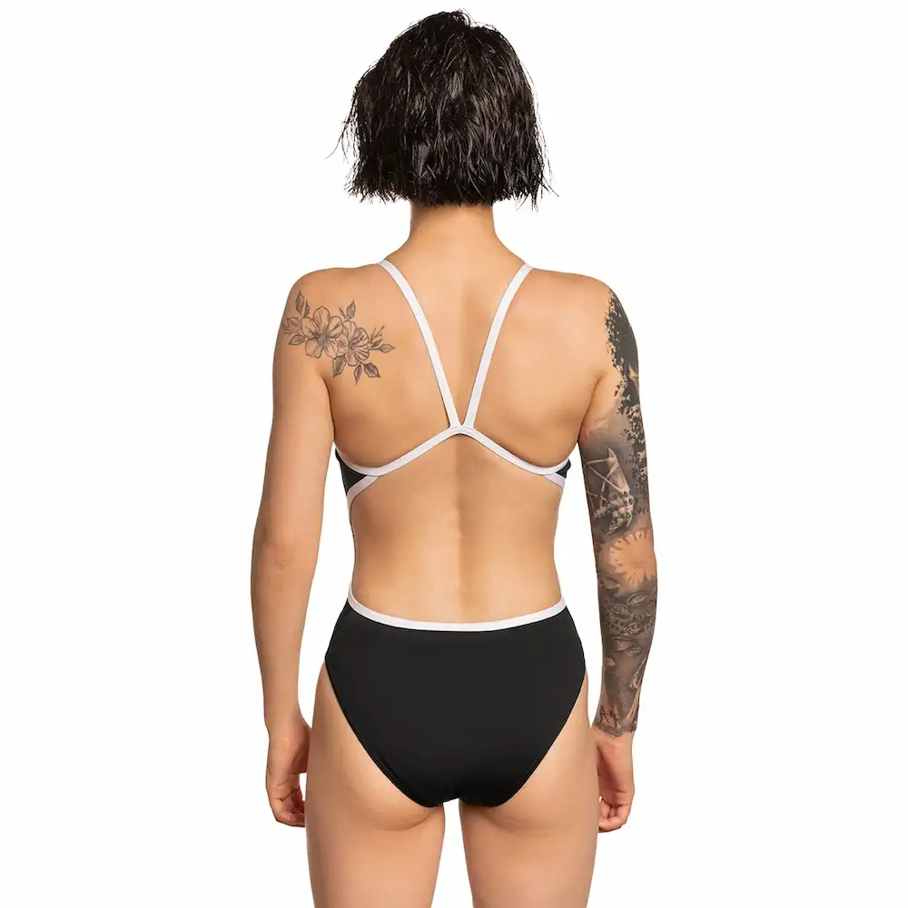 پشت باز (Light Back) و بندهای نازک این مایو، آزادی حرکت حداکثری را برای حرکت بازو دستها و بالاتنه فراهم میکند.
