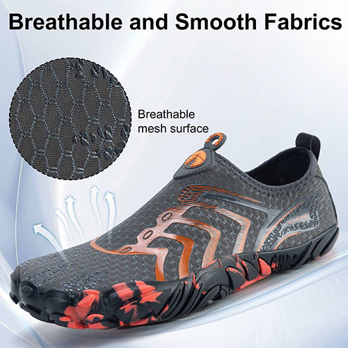 • زیره ضد لغزش: کف لاستیکی مقاوم با چسبندگی بالا، مناسب برای سطوح مرطوب و لغزنده مانند صخره، ماسه و کف رودخانه.