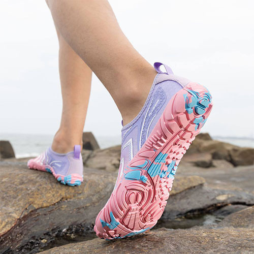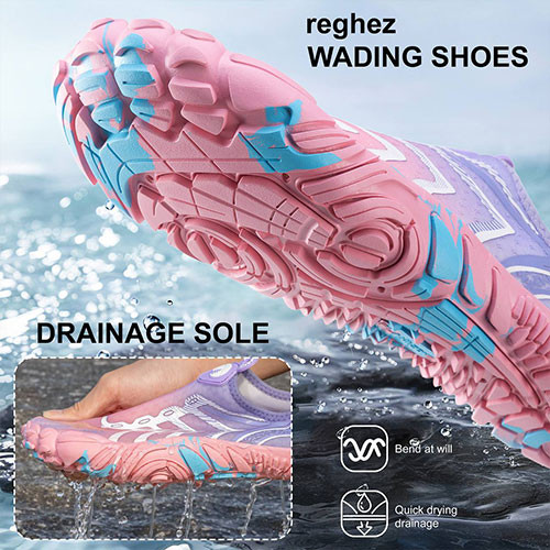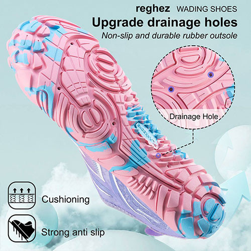 • زیره ضد لغزش: کف لاستیکی مقاوم با چسبندگی بالا، مناسب برای سطوح مرطوب و لغزنده مانند صخره، ماسه و کف رودخانه.