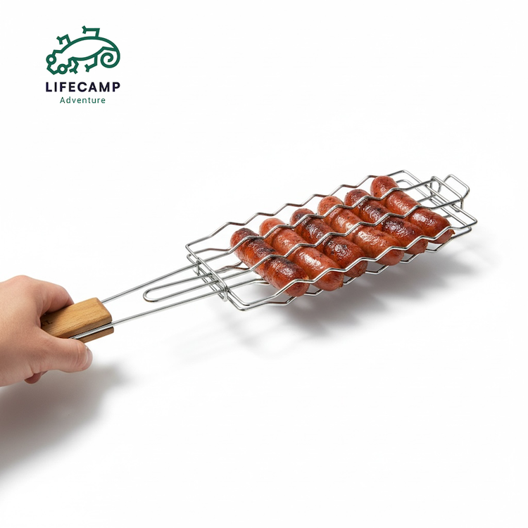 توری سوسیسپز لایف کمپ کد 45859 یک ابزار کاربردی و مقاوم برای پخت انواع سوسیس، کالباس و مواد غذایی باریک در فضای باز و حتی محیطهای خانگی است. بدنه این محصول از فولاد روکشدار ساخته شده که مقاومت بالایی در برابر حرارت مستقیم آتش و شعله گاز دارد و باعث پخت یکنواخت مواد غذایی میشود.