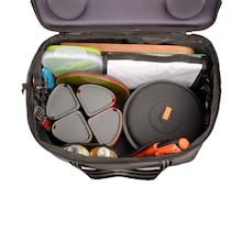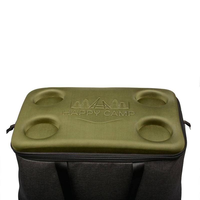 کیف پیک نیک هپی کمپ کد 46822 دارای قابلیت های مختلفی از جمله جمع شوندگی راحت می باشد. شما می توانید این کیف را جمع کنید و با کلیپس های طراحی شده در کنار آن ، درحالت جمع نگهدارید. همچنین در صورت پر بودن داخل این کیف شما می توانید از رویه آن به عنوان میز استفاده کنید و به همین خاطر بر روی این کیف 4 عدد جای لیوان تعبیه شده است. داخل این کیف پیک نیک دو عدد جیب و جای نگهداری قاشق، چنگال، چاقو و … برای منظم بودن داخل کیف طراحی شده است.