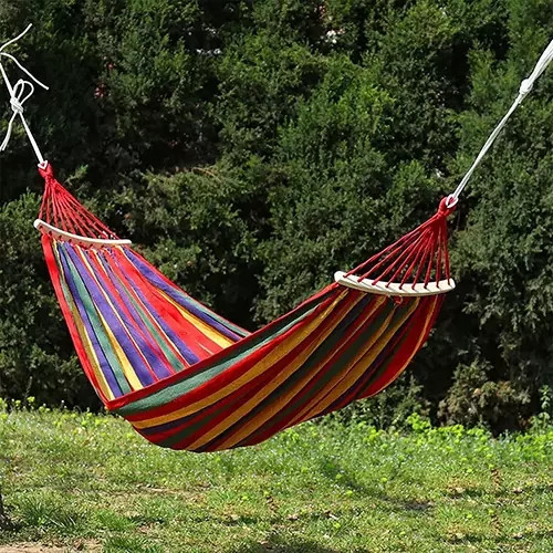 تخت آویز و ننو 1 نفره چوبدار مسافرتی، یک همراه مناسب برای سفرها و کمپینگ است که با فراهم آوردن راحتی و آرامش، تجربهای دلپذیر از طبیعت را به شما هدیه میدهد. این ننو با ابعاد 195×85 سانتیمتر و تحمل وزن تا 180 کیلوگرم، به شما فضای کافی برای استراحت و لذت بردن از فضای باز میبخشد.
