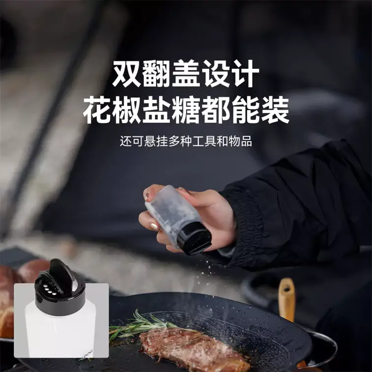 دارای 3 عدد قوطی ادویه از جنس PP : قوطیهای مقاوم و ضد ضربه