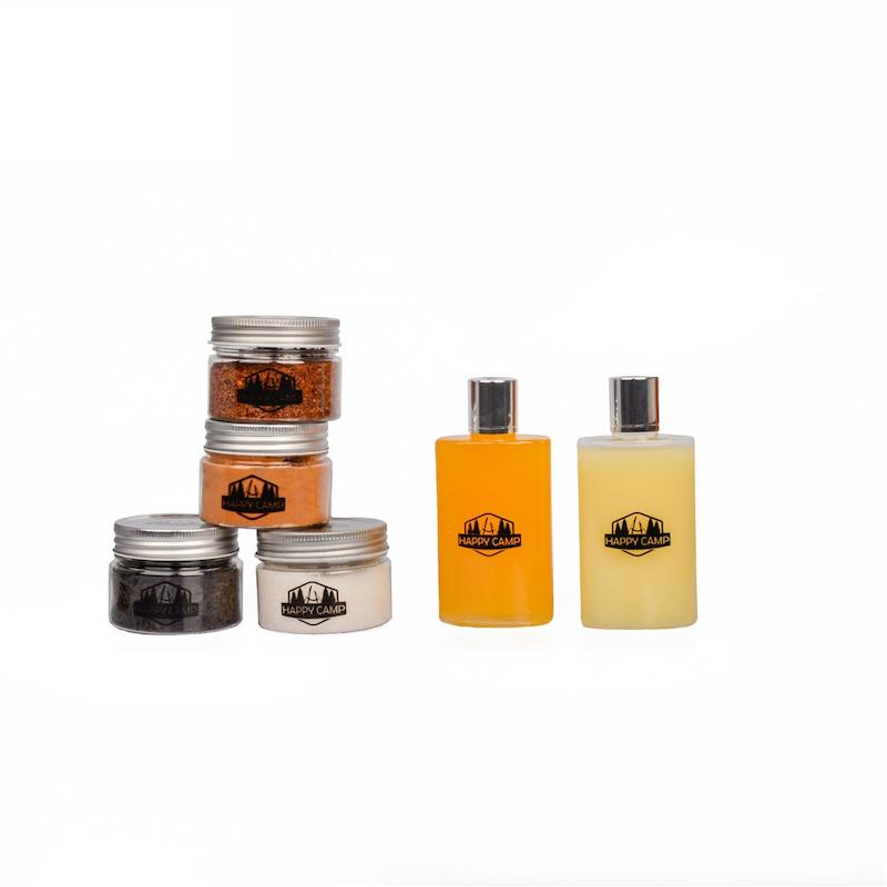 در این کیف 2 بطری در سایز 200 میلی لیتر برای مایعات لازم و 4 عدد قوطی با حجم 150 میلی لیتر جهت حمل هرگونه ادویه جات یا مواد های افزودنی برای آشپزی قرار داده شده است. برای استفاده در سفر، کمپینگ، پیک نیک و غیره ایده آل می باشد. کیف ست از برزنت جودون بسیار مقاوم تهیه شده که مقاومت بسیار بالایی به آب، ساییدگی و پارگی از خود نشان می دهد. جا ادویه ای ها از PET بهداشتی و فاقد مواد مضر و درب آنها از آلومینیوم ساخته شده است و علاوه بر وزن و حجم کم بسیار با دوام و عمری هستند. وزن خالص ست 360 گرم می باشد.