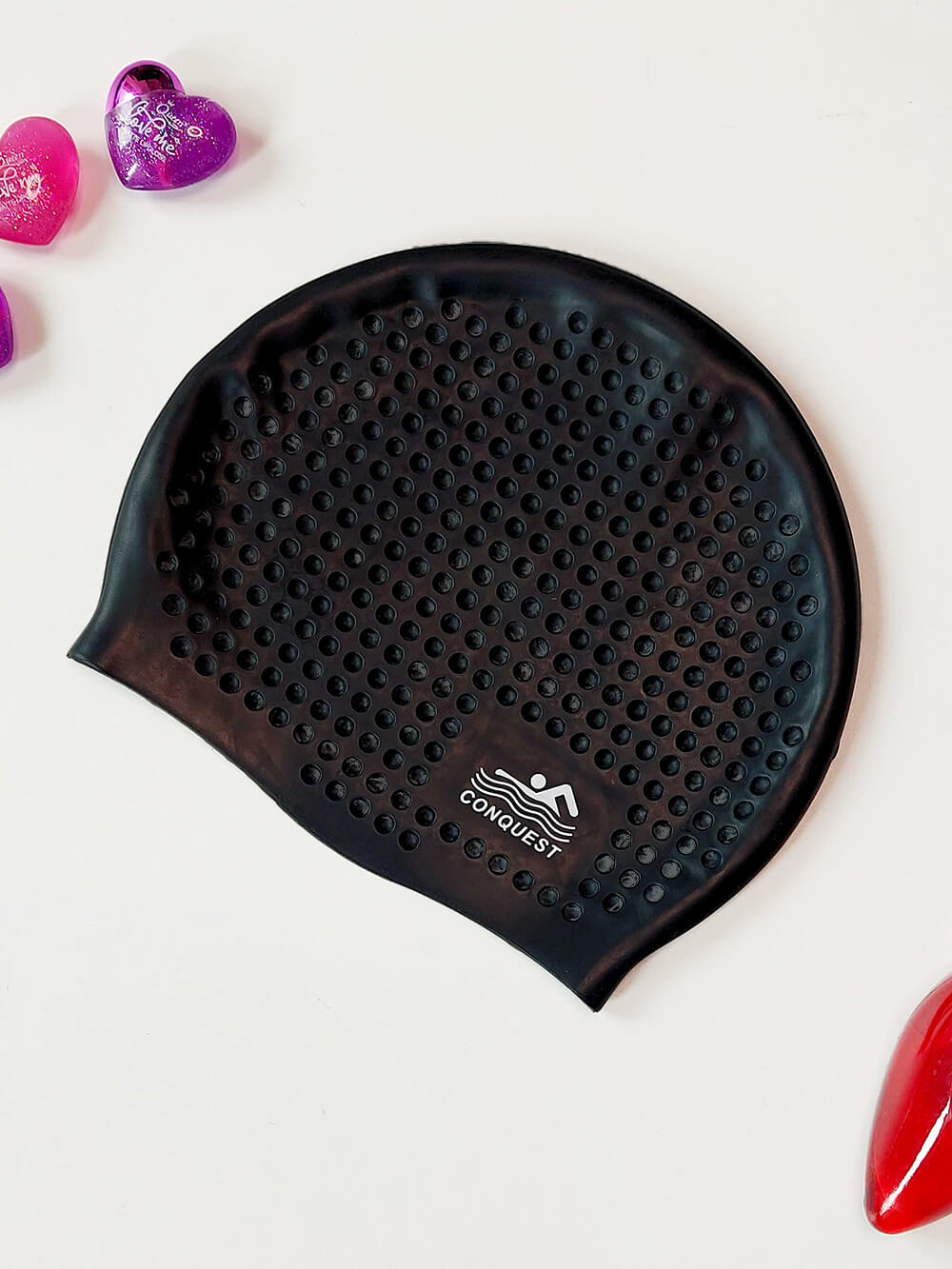 کلاه شنا مشکی رنگ سیلیکونی مارک کانکوئست ( Conquest ) طرح توپی